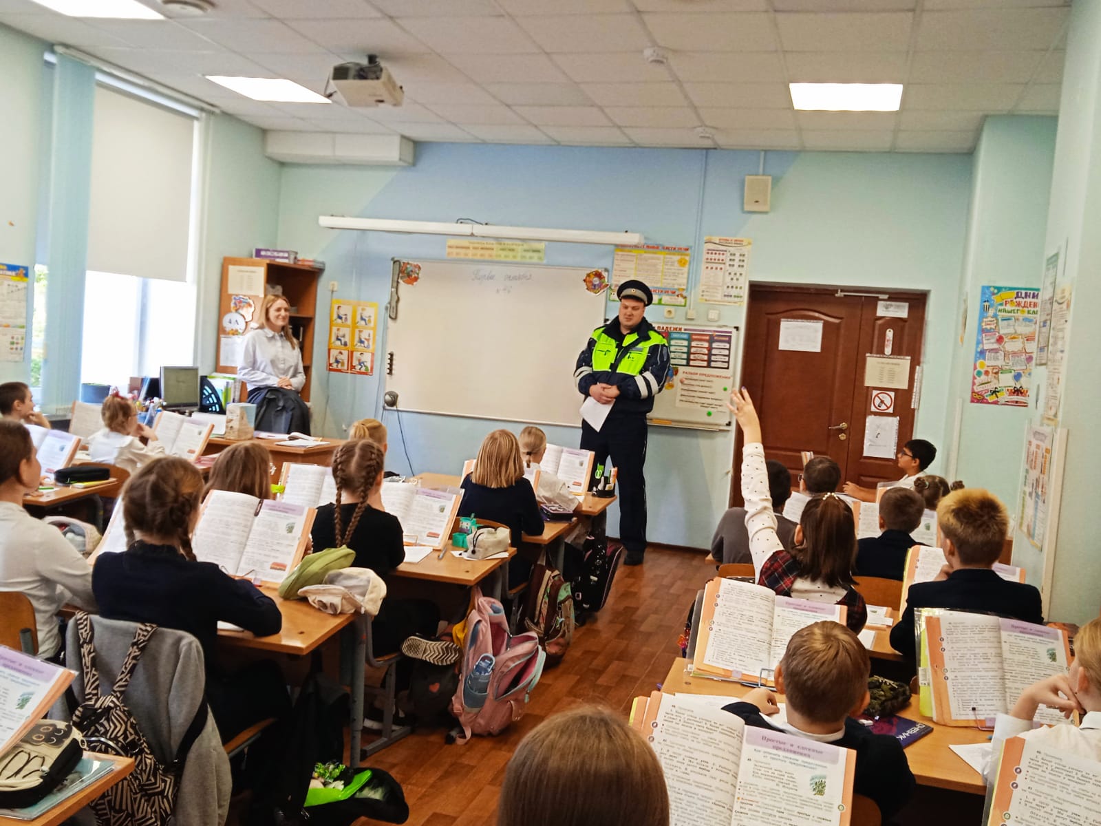 1 октября 2025 года в рамках Городской акции «Безопасный город» для гимназистов 4а класса (классный руководитель Мельникова Татьяна Валерьевна) сотрудником Госавтоинспекции Кировского района Санкт-Петербурга была проведена профилактическая беседа, в ходе которой он напомнил ребятам о правилах перехода проезжей части, разъяснил, для чего используются световозвращающие элементы и почему их нужно обязательно иметь на верхней одежде.