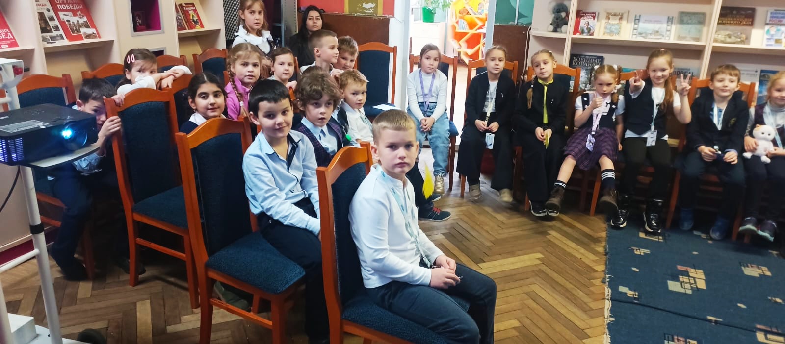 Гимназисты-первоклассники (классные руководители Викторова Татьяна Александровна и Трунова Елена Александровна) совершили культурный поход в библиотеку №6 Кировского района, где для ребят была проведена экскурсия «Это имя, как гром и как град: Петербург, Петроград, Ленинград!».