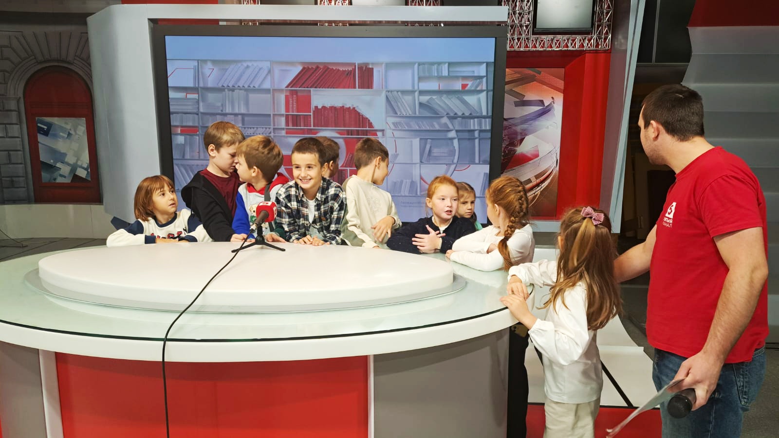 Ребята 2б класса (классный руководитель Иванова Ксения Андреевна) посетили студию нашего главного городского Пятого телевизионного канала и попробовали себя в качестве тележурналистов.